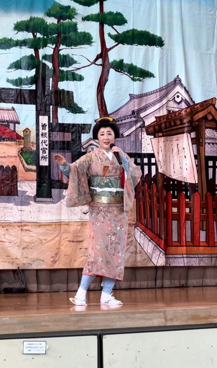 心配された天候も好転し秋晴れとなったこの日、入山は艶やかな奥方姿で参加。地元住民や駆けつけたファンを前に、優雅な時代衣装をまとった姿で声援に応え、その姿のまま歌謡ショーを開催した。