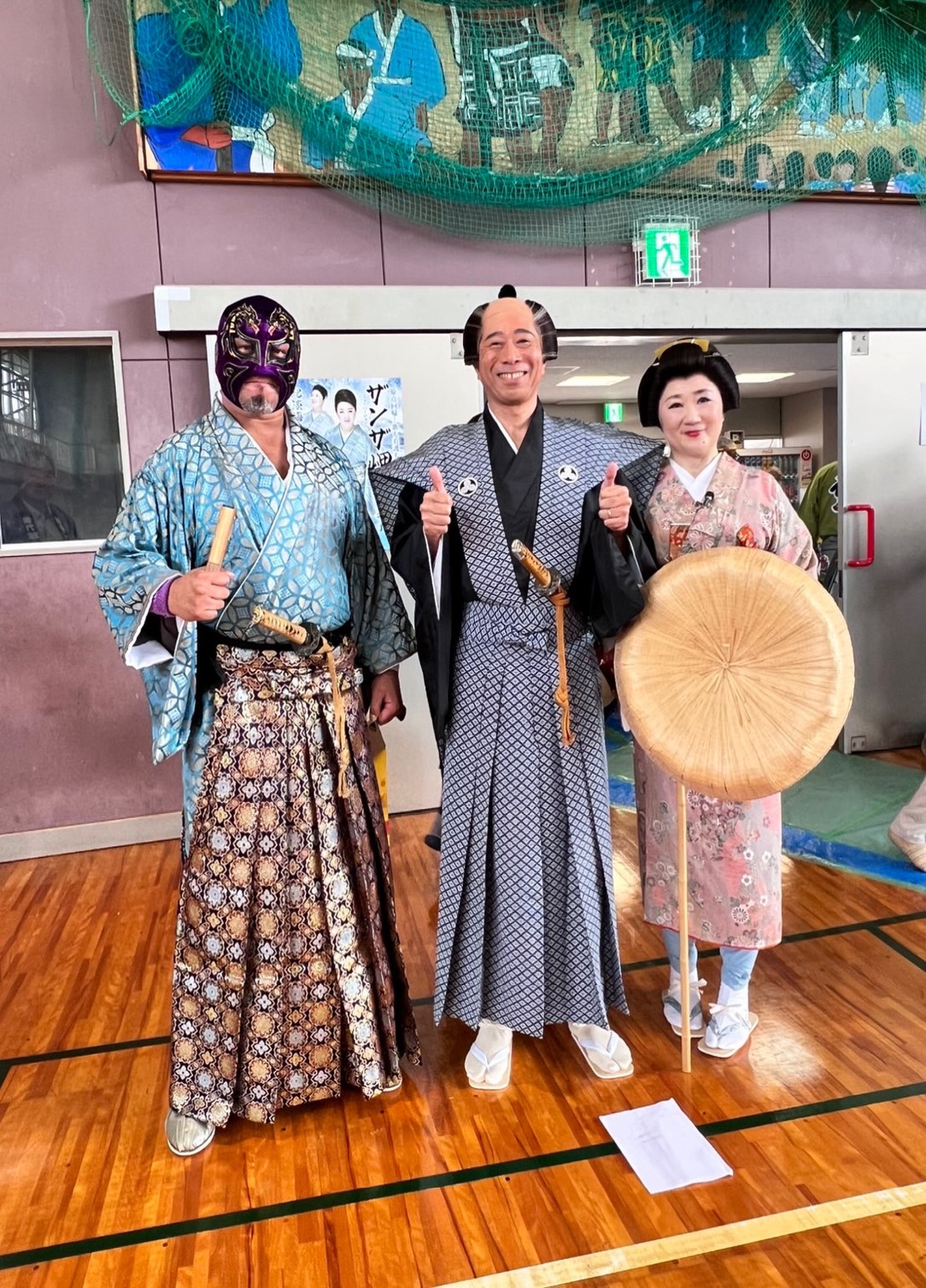 さらに、得意の健康ワンポイントアドバイスと、新曲「シアワセをありがとう」に合わせて観客とともに健康体操も行った。江戸時代にタイムスリップしたかのような雰囲気に、ショーもいっそう盛り上がった。