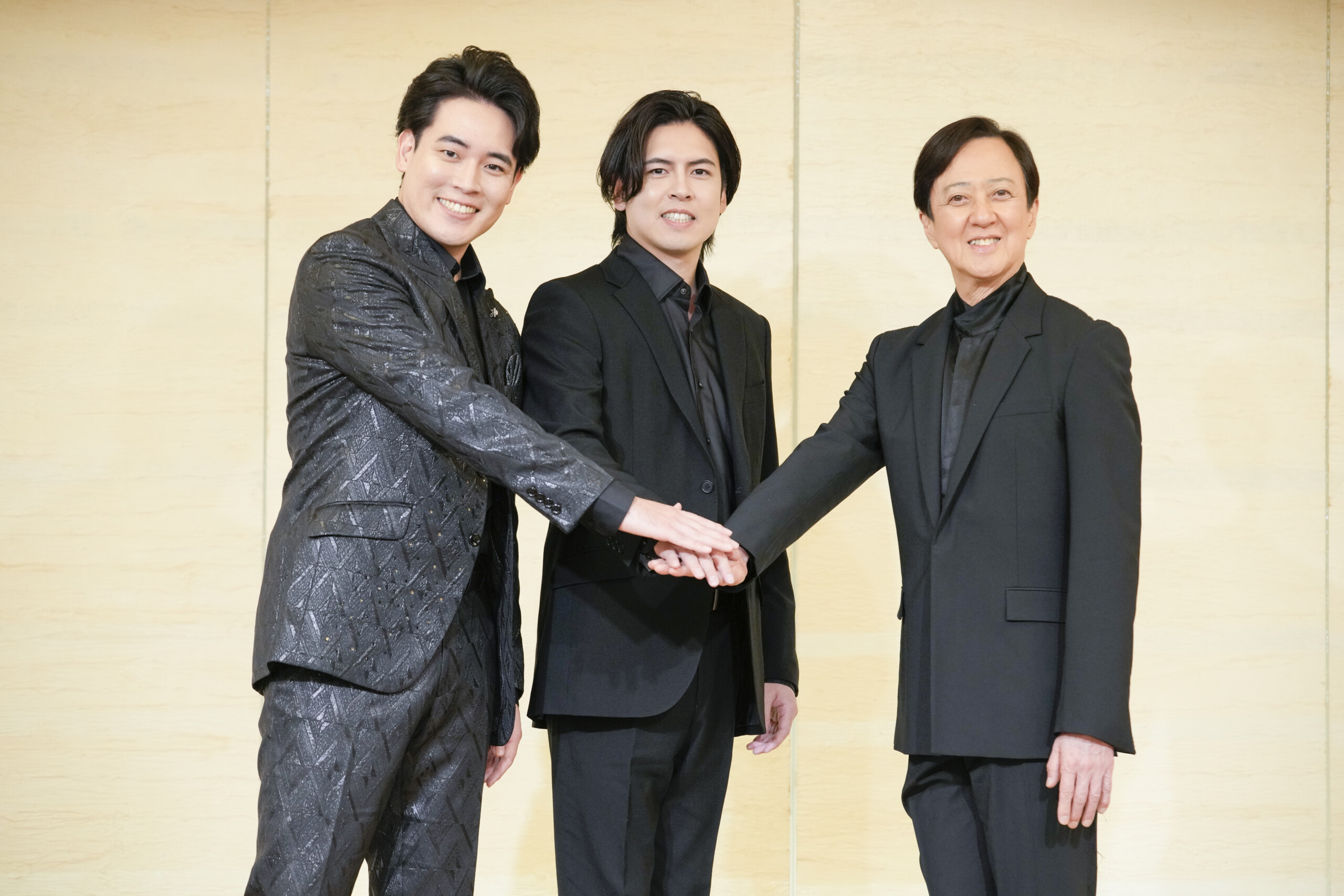 写真左より弟の木村徹二、兄の木村竜蔵、今回のプロデュースを務める歌舞伎俳優の坂東玉三郎