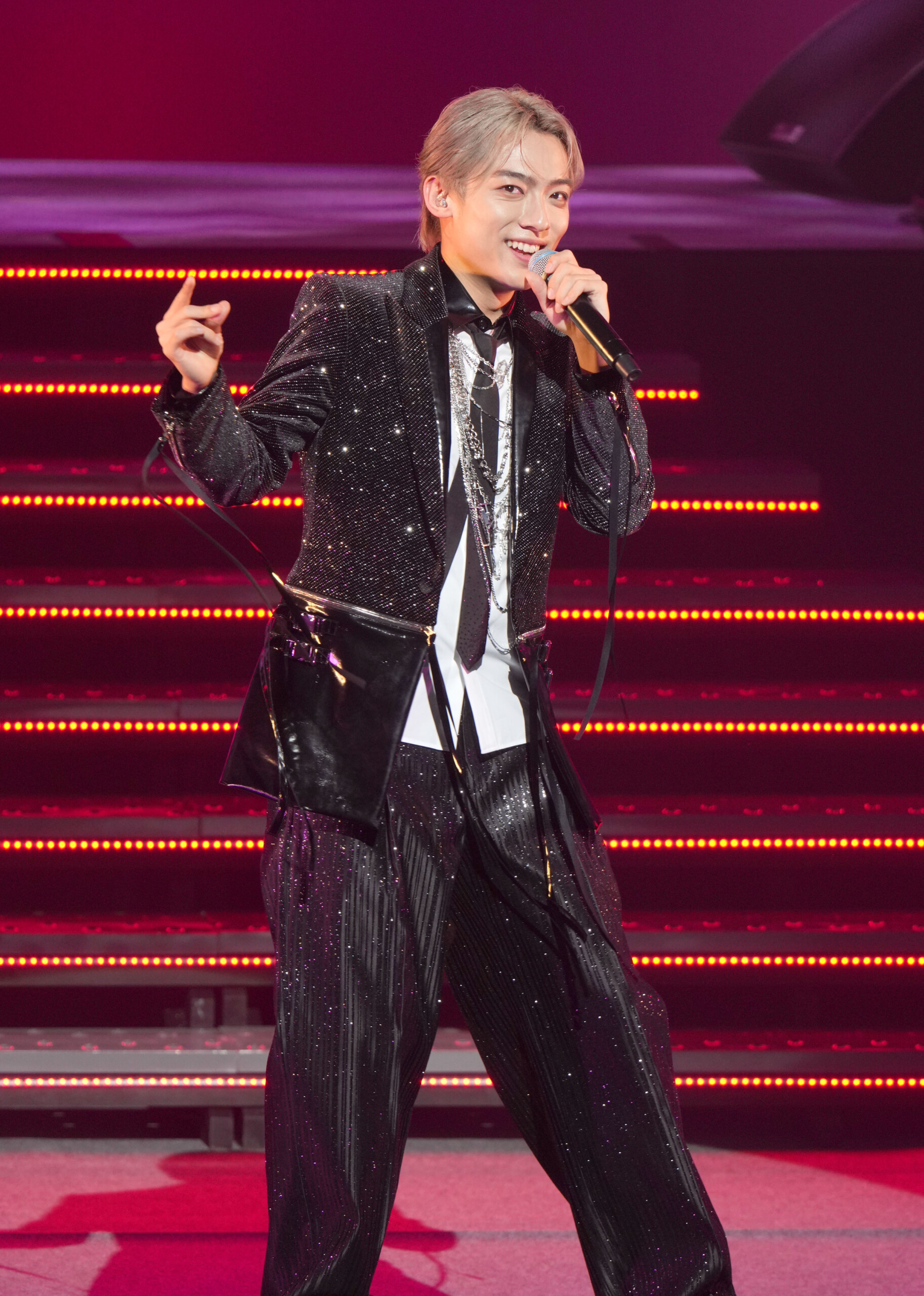 ▲メイクや衣装も刷新。「演歌歌手=黒髪」という既成概念にとらわれず、新時代の演歌像を提示していく覚悟を明かした辰巳。Number_iを意識したアッシュグレーへ大胆チェンジした髪色は、AIアプリを活用して最適な色を探し決定した。「いままでは他人事だったんですけどチャレンジしたいなと思った」(辰巳)