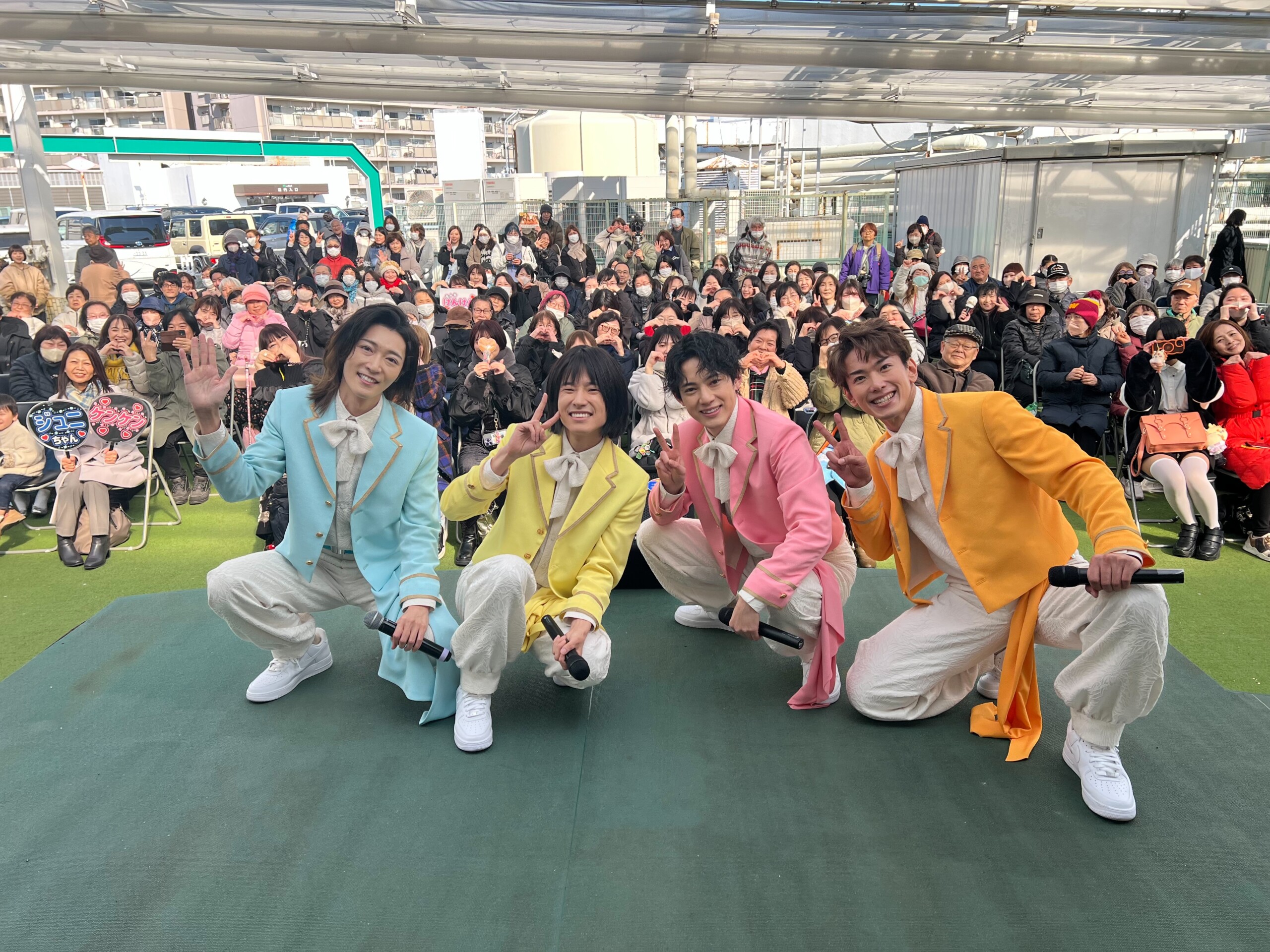 初ステージを終えた芸能界デビューの最年少のおヨネは「本当に緊張しすぎて…デビュー曲の説明は私がする予定だったのにケンケンに丸投げしそうになっちゃいました…。寒い中早朝から待っていてくださった方もいると聞いて、本当にありがたかったです。」と語り、同じく初体験のサカイJr.は、「ずっと会社員だったので、実際にお客さんを前にして反応を直で感じることができて嬉しかったです。初めてなのにこんなにもたくさんの方が来てくれると思わなかったので、とてもありがたかったです!」と語った。