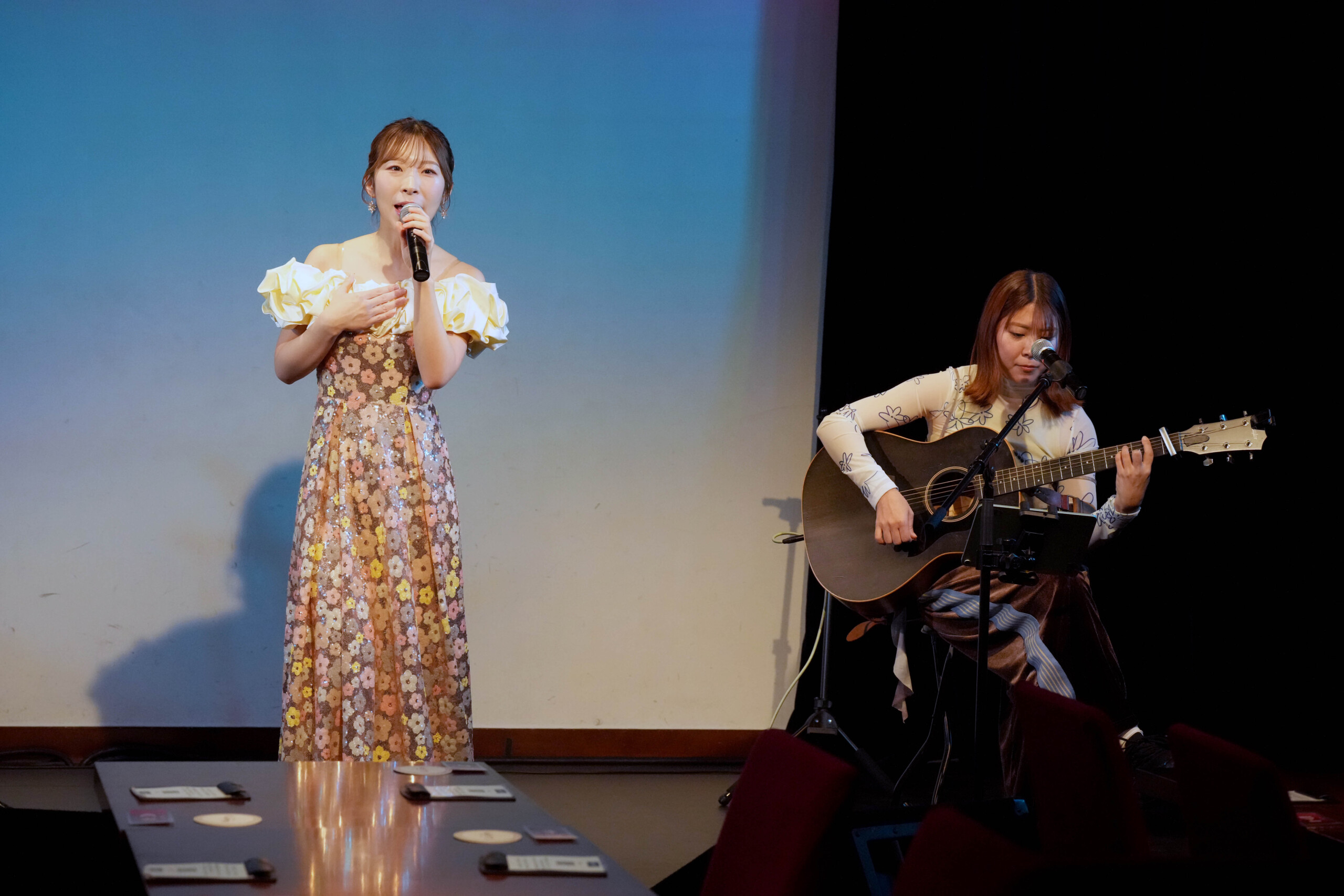 また、その2曲を作詞・作曲したシンガー・ソングライター、山崎あおいがゲスト出演。自身のオリジナル曲で、アルバム『観察日記2』より先行配信曲「Quarterlife」や、岩佐とデュエットで「バレンタイン・キス」(国生さゆりのカバー曲)などを披露し、後半は岩佐が第10弾シングル「アキラ」、ギターの弾き語りでAKB48の大ヒット曲「365日の紙飛行機」、宇多田ヒカルの「First Love」、前作シングル「マッチ」などアンコールを含めて全17曲を熱唱した。