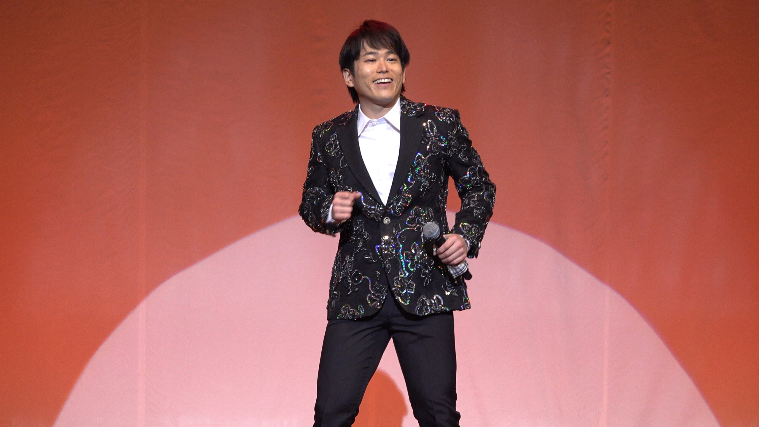自身のテーマソングと言われている「花まる街道旅鴉」や、昨年12月に発売した15周年記念曲「俺らのまつり」などのオリジナル曲はもちろんのこと、演歌歌手を目指すきっかけとなった氷川きよしの「きよしのズンドコ節」や松平健の「マツケンサンバⅡ」を振り付きで披露。