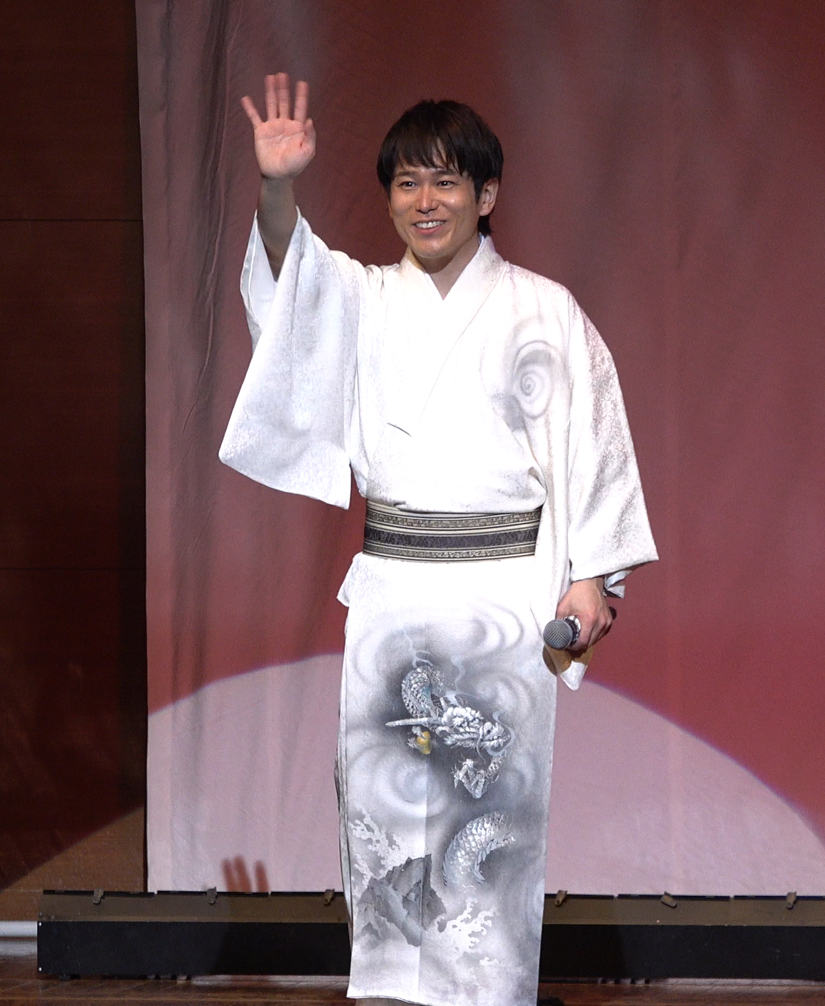 自身のテーマソングと言われている「花まる街道旅鴉」や、昨年12月に発売した15周年記念曲「俺らのまつり」などのオリジナル曲はもちろんのこと、演歌歌手を目指すきっかけとなった氷川きよしの「きよしのズンドコ節」や松平健の「マツケンサンバⅡ」を振り付きで披露。