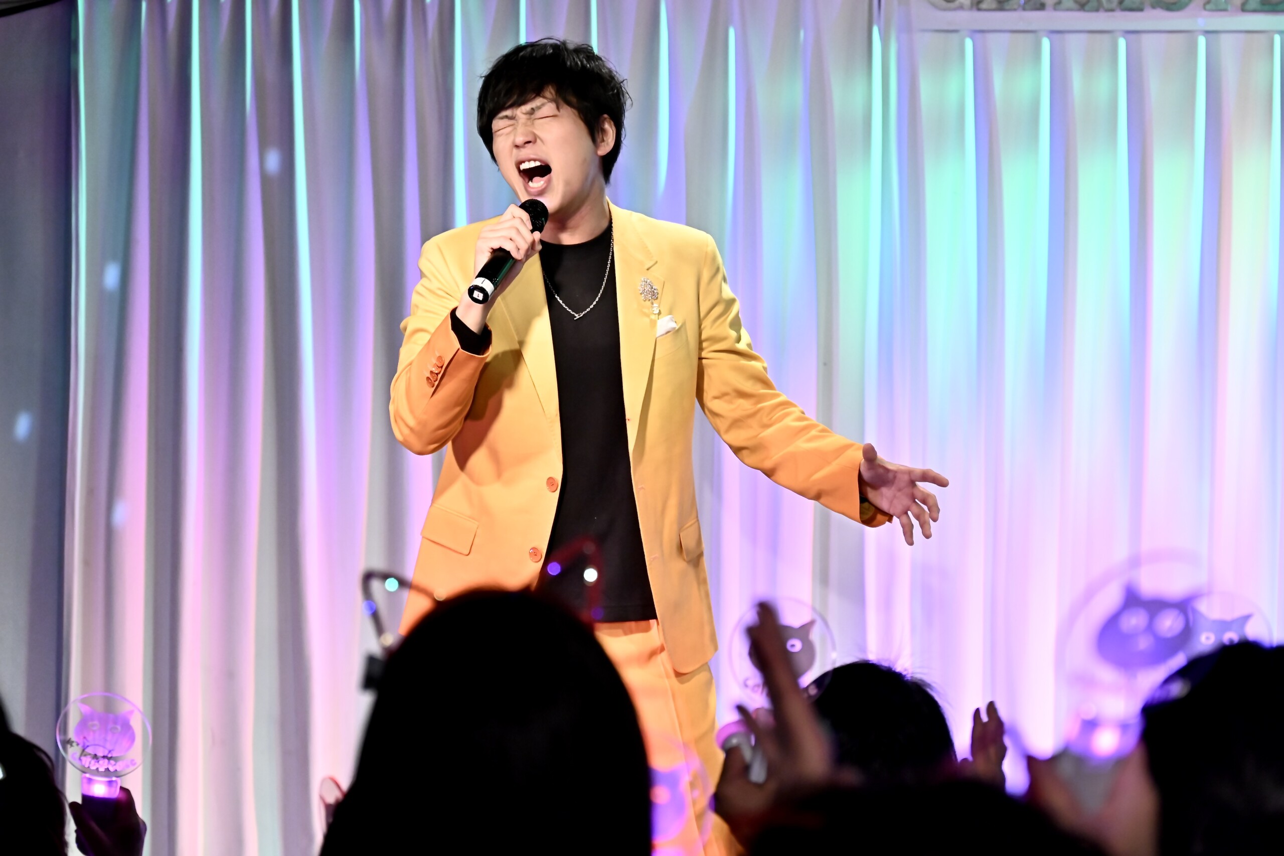 そして、4月1日に控える「永遠の沼に堕ちたマリオネット」タイプCの発売を改めてファンに報告。新たなカップリング曲「こんなに君が好きなのに」をフルサイズで披露した。同作は、切なさとまっすぐな想いが同居するラブソング。熱唱する岡本を、ファンは静かに見つめ耳を傾けた。