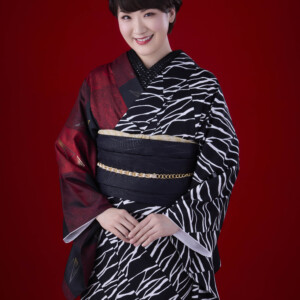 市川が京都の呉服屋で出合ったという黒地の着物には、花札が大胆に描かれ、なんと「ちりぬるを」の文字が右肩部分に描かれている。僅かに訪れるのが遅かったらこの着物に出会うことはなかったため、まさに運命的な出会いであった。