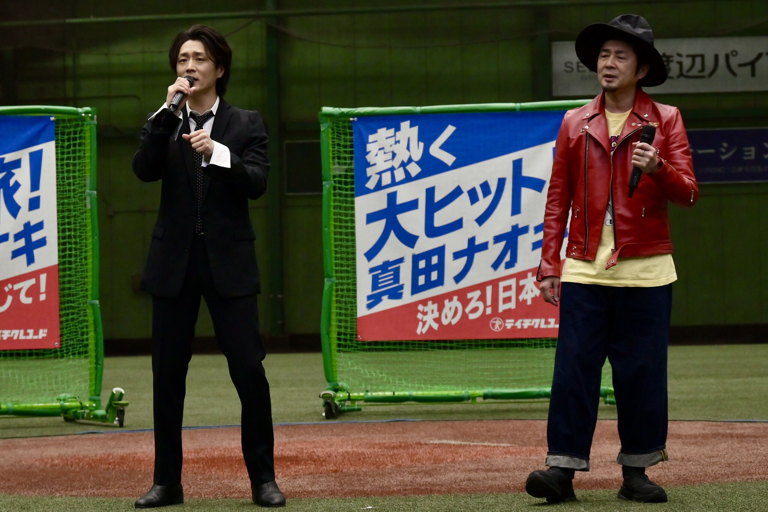演歌界きっての”燕党”として知られる真田にとって、この日も野球愛は全開だった。これまでにも、マスコットのつば九郎とのバッティング対決、神宮球場での始球式、今年3月には高知でオープン戦での国歌独唱の大役を務めるなど、野球にまつわる華々しい経験を重ねてきた。