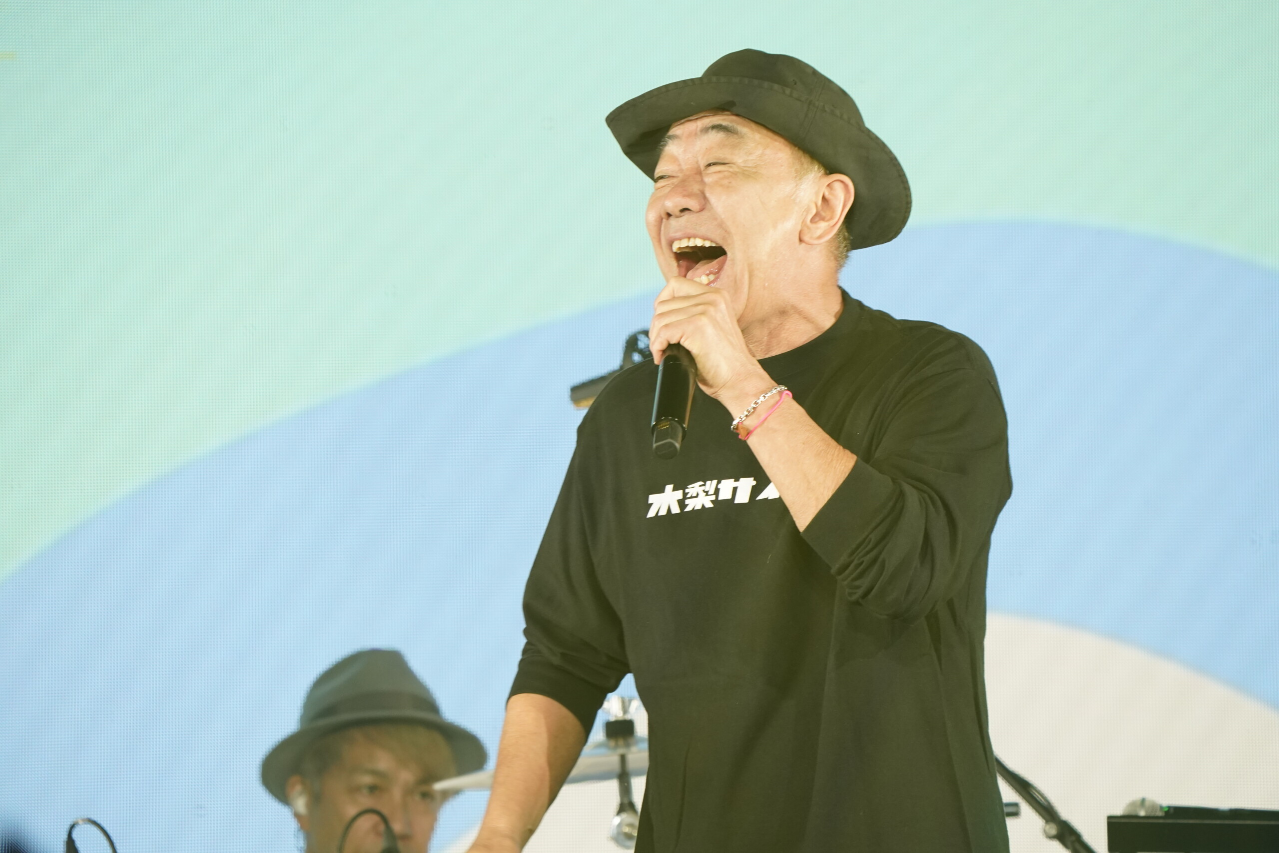 歌唱終わりのMCでは、今週土曜日に大分で開催するジゴロックフェスの練習がしたいと話す木梨。「おじさんメドレーの曲に付き合いなさい」と宣言した木梨憲武が会場を笑いに誘ったことが合図のように木梨憲武メドレーが始まる。手拍子と歓声が上がり、会場が活気に包まれた。まさにジャンルの垣根を越えたコラボレーションが実現した。