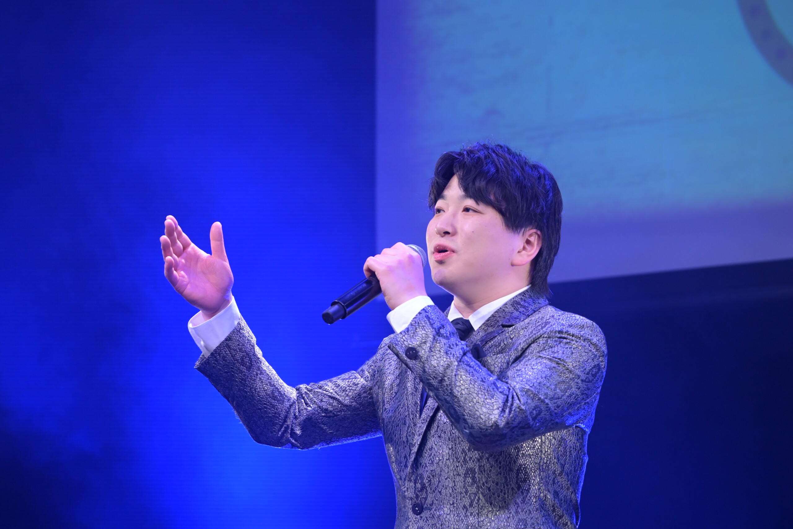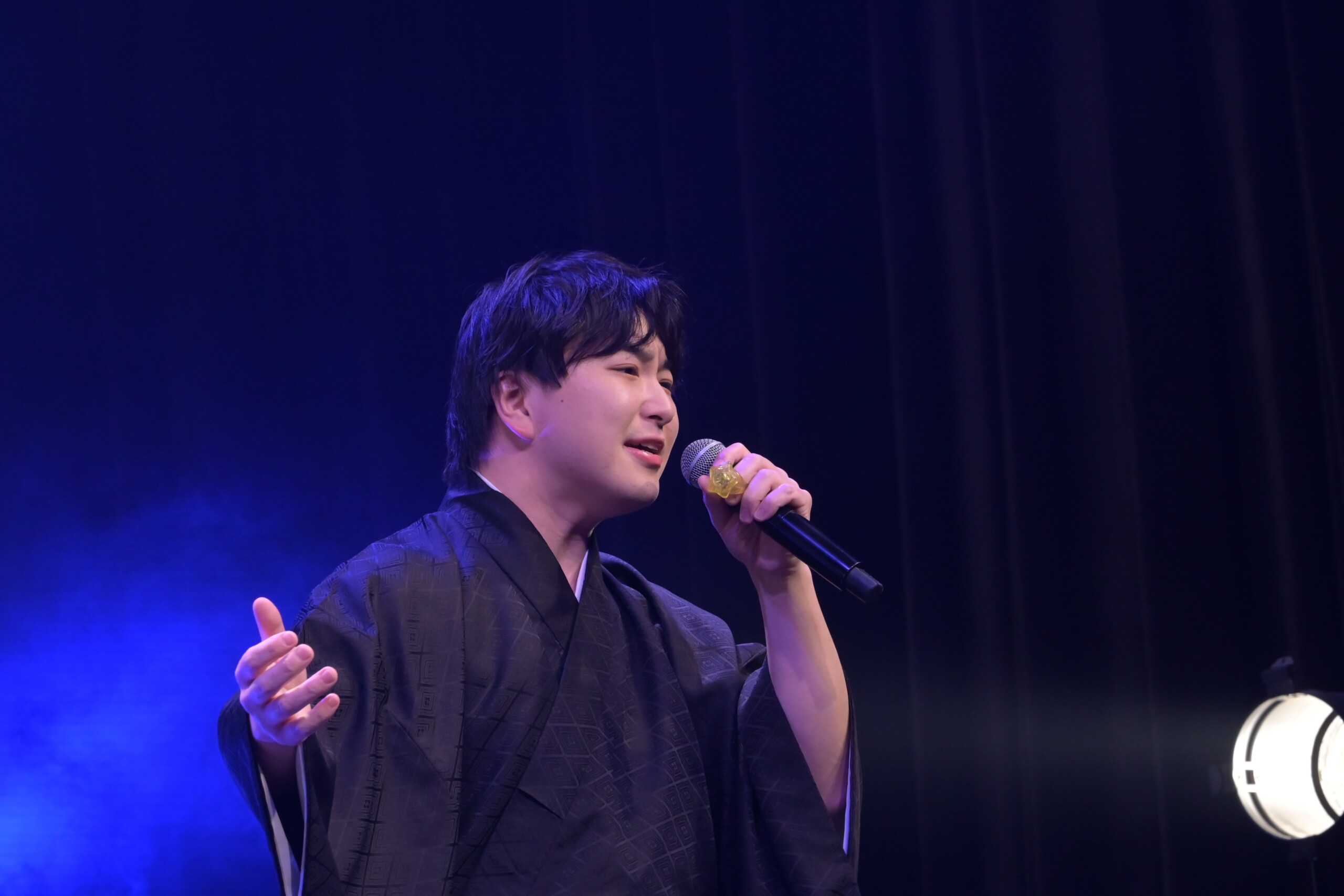 トップバッターは、昨年5月にデビューしたての須賀亮雄。デビュー前から応援してきた熱烈なファンが多く駆けつけ、デビュー曲「ふるさと春秋」を歌う須賀を見守った。