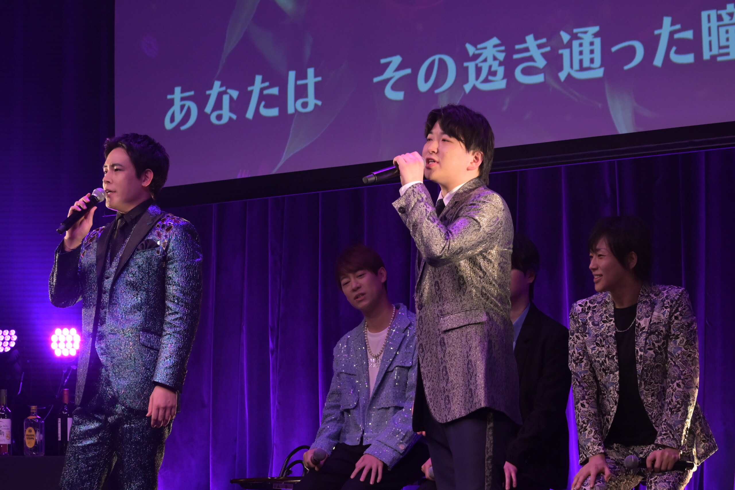 純烈の酒井一圭の作詞で話題になった最新曲「永遠の沼に堕ちたマリオネット」は、4月1日に追撃盤がリリースされた。そのカップリング曲「こんなに君が好きなのに」は、岡本の優しさがそのまま表れているようなバラードで、来場者もしっとりと聴き入った。