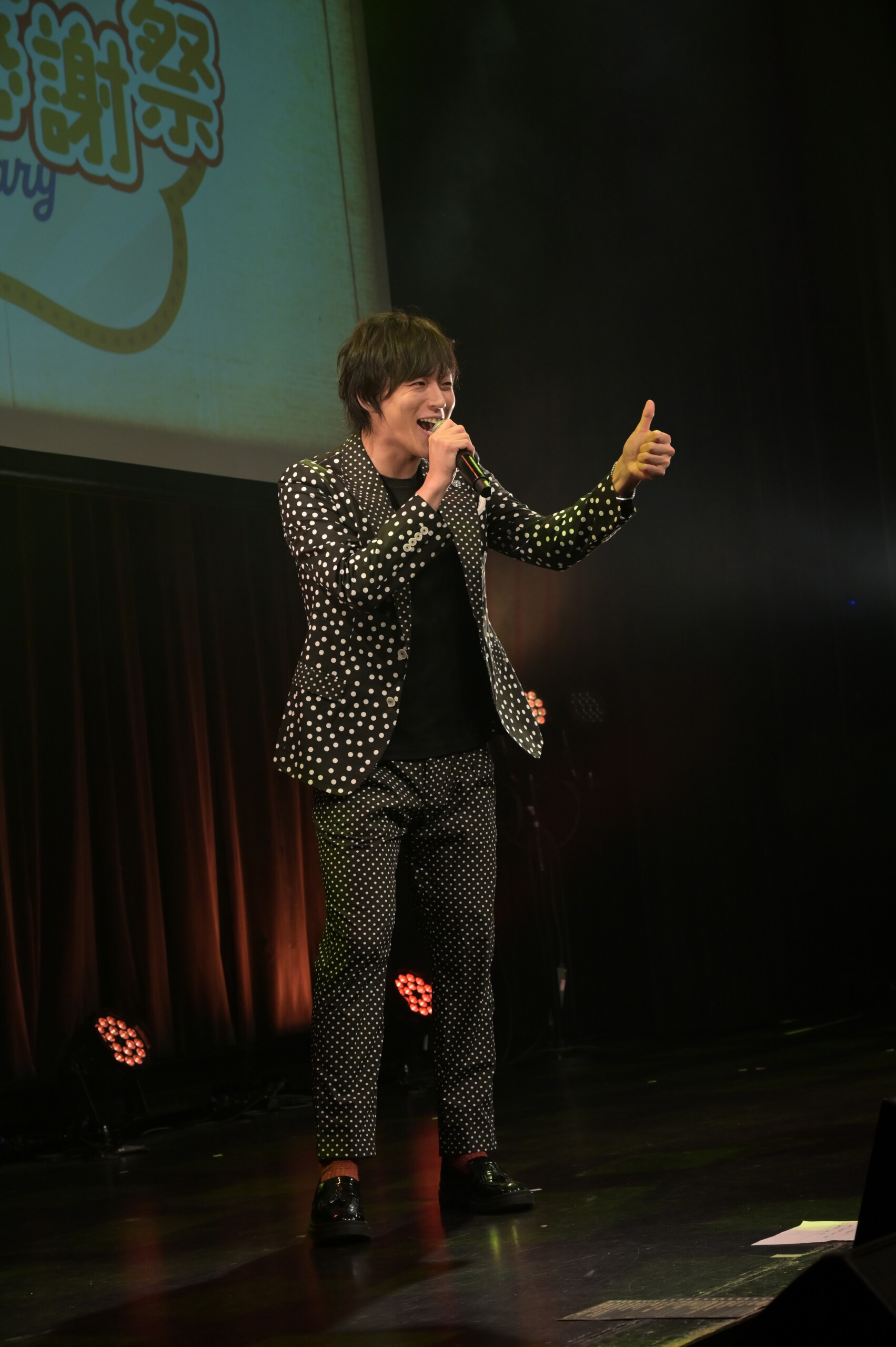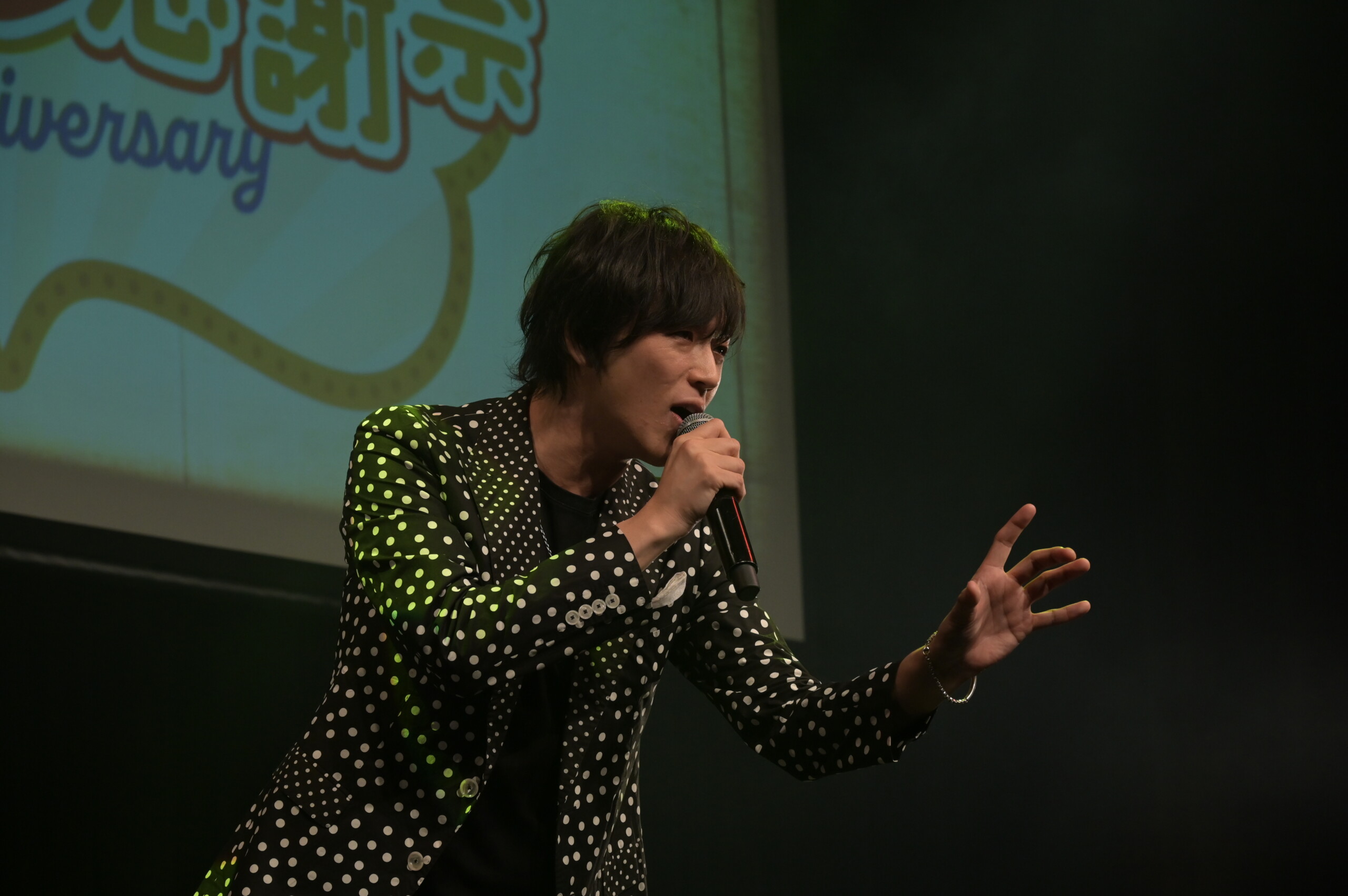 2周年の感謝祭でオープニングアクトを務めた岡本幸太が、2年前と同じ「君に愛がとまらない」でカラフルのステージに帰ってきた。すっかりおなじみになった“くるくるダンス”と“こうたんコール”で、おおいに盛り上がる。